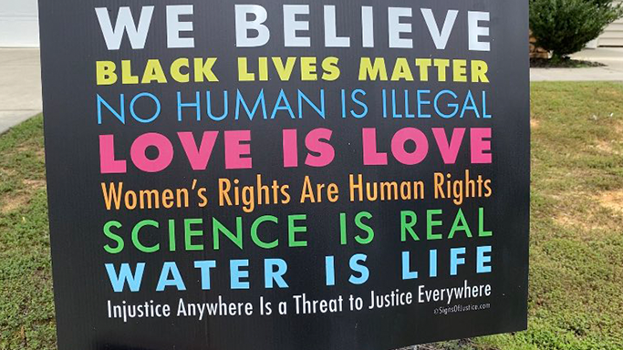 Yard signs are popular during election years, and the closer we get to November 3, the more signs we can expect to see. But, lately, in my neighborhood, I’m seeing more and more social justice yard signs that read: “In This House, We Believe: Black Lives Matter, No Human Is Illegal, Love is Love, Women’s Rights Are Human Rights, and Science is Real.”