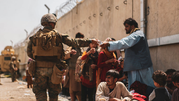 In an act of desperation to escape, Zaki Anwari, an Afghan high school student and promising young soccer player, died after falling from a U.S. military plane. After waiting 40 hours in the Kabul airport chaos, a six-week-old infant was pictured sleeping on a dirty suitcase, as his 3-year-old sister was scorched in sunburn. Another baby was lifted over a barbed wire wall to receive medical help from the U.S. Marines, and troops are cradling babies awaiting a safe escape.