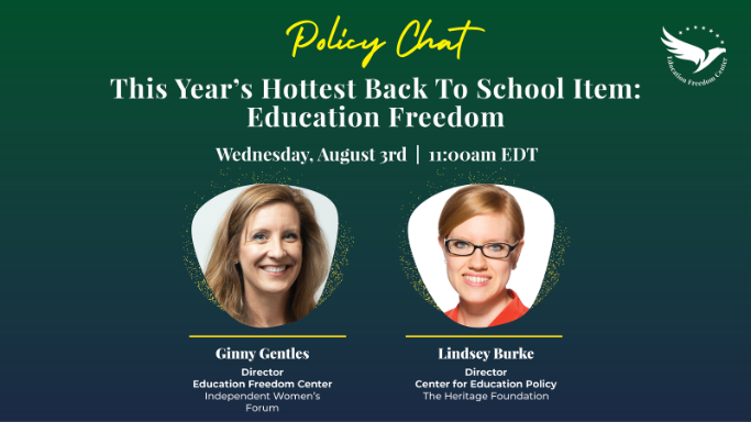 IWF’s Education Freedom Center director, Ginny Gentles, will discuss this year’s hottest back-to-school item—education freedom—with The Heritage Foundation’s Lindsey Burke! How can education freedom help empower parents and students this back-to-school season? Tune in to find out!