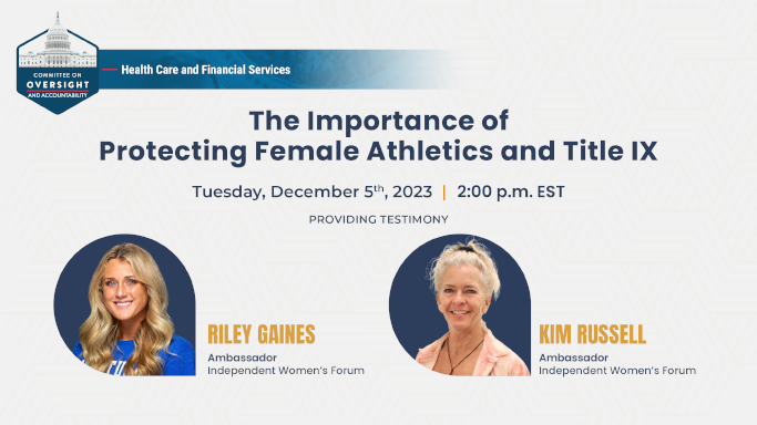 Riley Gaines, IWF ambassador and former swimmer at the University of Kentucky, and Kim Russell, IWF ambassador and lacrosse coach, will provide expert testimony before the House Oversight Committee on women’s athletics, the NCAA, and Title IX.