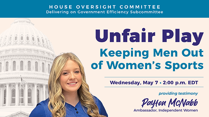 Independent Women Ambassador Payton McNabb will testify before the House Oversight Committee, Delivering on Government Efficiency Subcommittee, on Wednesday, May 7th, 2025. In a hearing titled “Unfair Play: Keeping Men Out of Women’s Sports,” McNabb will share her personal experience of being injured due to a male player on a women’s volleyball team.