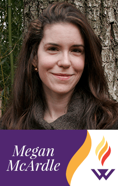 McArdle joined The Economist in 2003, where she remained until 2007, when she became a blogger for The Atlantic. She subsequently became The Atlantic’s business and economics editor. After a year at Newsweek and The Daily Beast—at the time fabled editor Tina Brown’s shop—McArdle was hired by Bloomberg. She lives in Washington, D.C., with her husband Peter Suderman, a senior editor at Reason magazine.