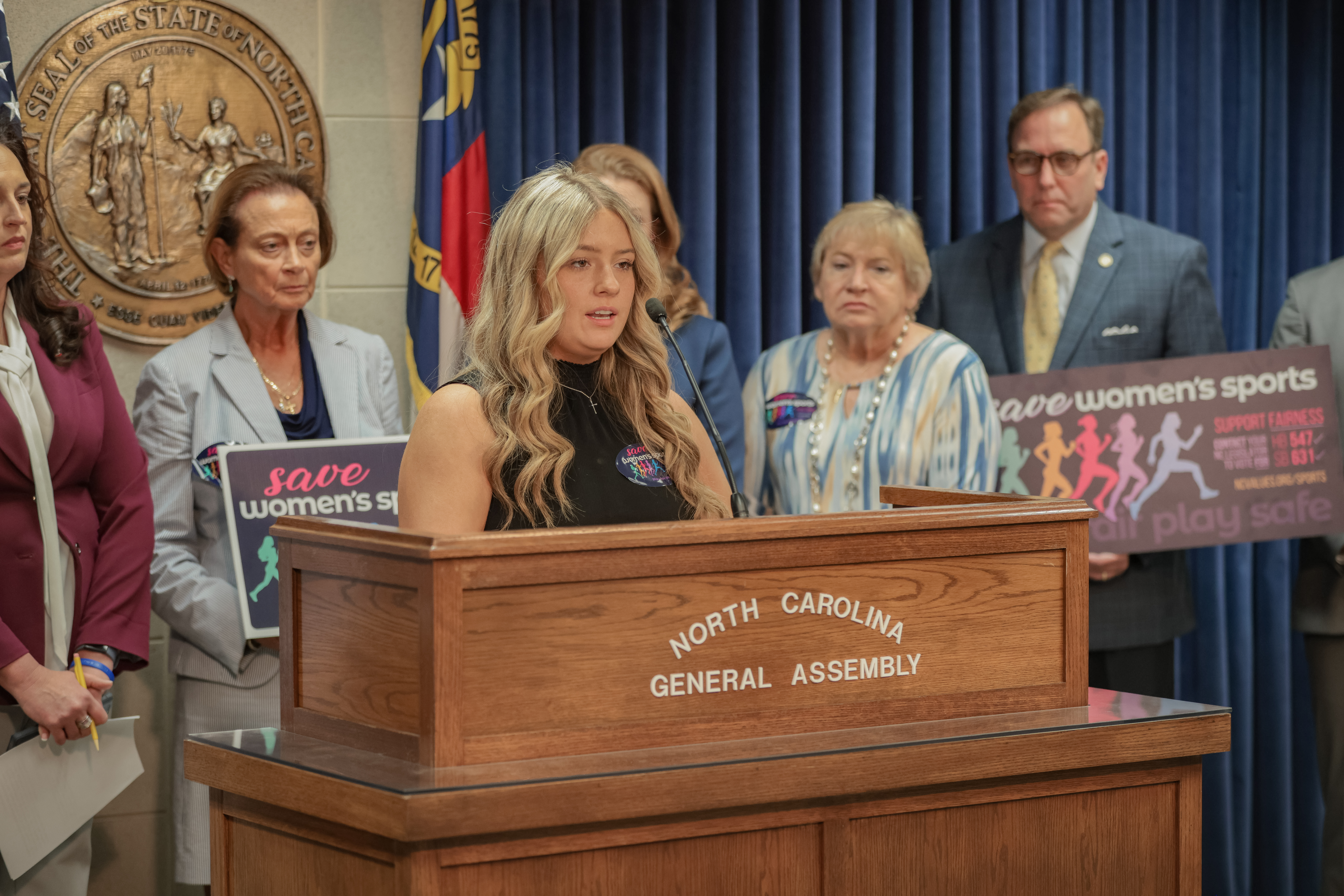 McNabb testified before the North Carolina General Assembly in April 2023, alongside Independent Women Spokeswoman and 12x All-American swimmer Riley Gaines, to advocate for the passage of a Fairness in Women’s Sports Bill. During her testimony, McNabb said, “I’m here for every biological female athlete behind me. My little sister, my cousins, my teammates. Allowing biological males to compete against biological females is dangerous. I may be the first to come before you with an injury, but if this doesn’t pass I won’t be the last.”