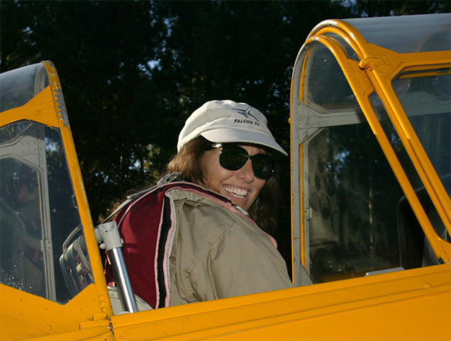 “I had to go to a licensed civilian instructor to get the correct hours to get my license,” she says. “Bless his heart, Chuck was supportive. He came out to every single lesson. And he would correct the guy on our drive home, not in front of him. There was one time he corrected him in front of me, to his face, and that had to do with a short-field landing,” which can be tricky. Nothin’ like being the flight instructor and learnin’ the husband who picks up your student after class is the guy who broke the sound barrier.